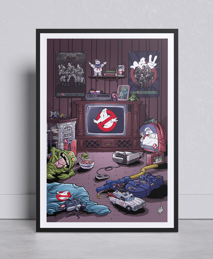 Originally created by Tim Lattie for the 35th Anniversary Ghostbusters Fan Fest, this piece has become a fan favorite. A tribute to VHS days, Saturday mornings, and the ghost stories that shaped a generation.